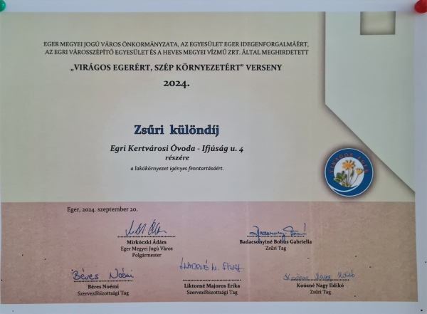 Óvodánk büszkén viseli az Állatbarát Óvoda címet, már 2023 óta.